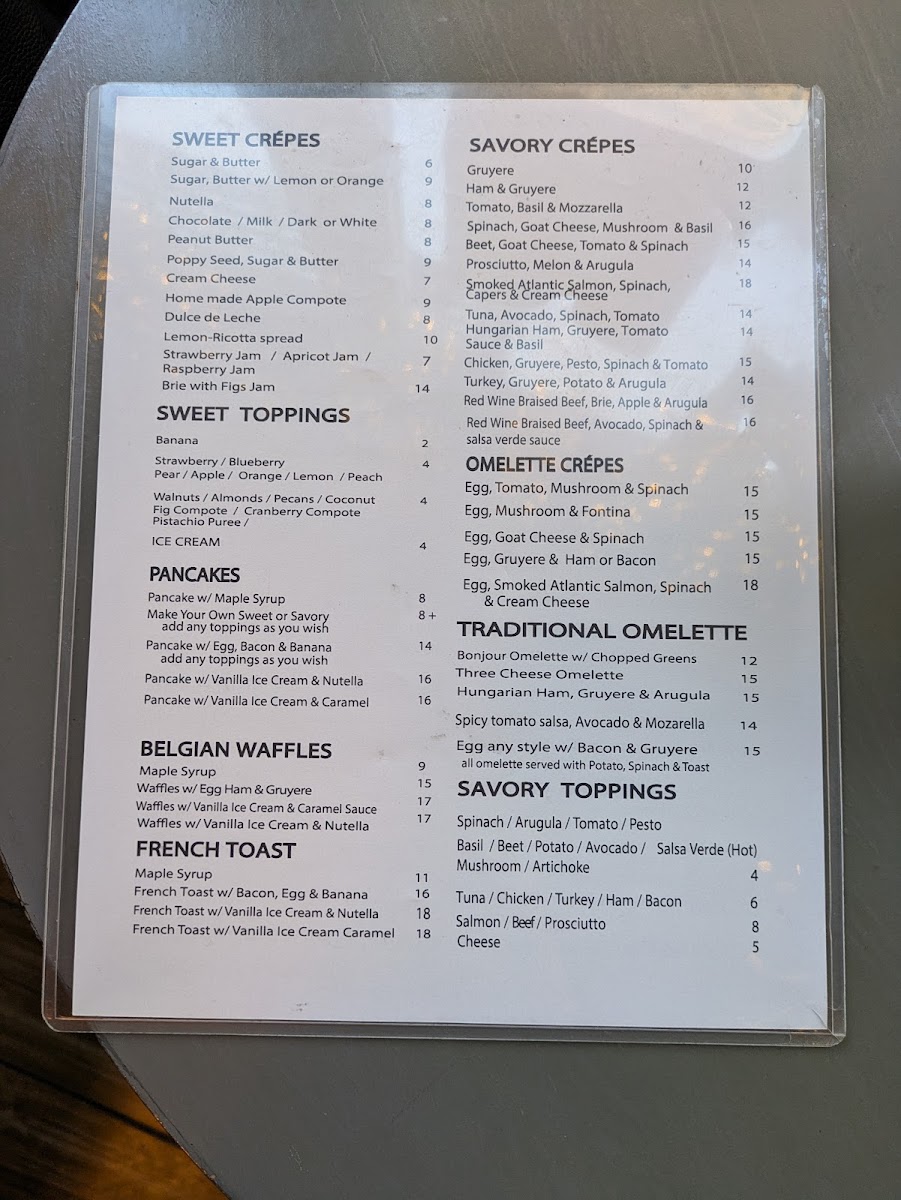 From the nostalgic charms of classic sugar and butter crepes to robust options like braised beef, there's a taste for everyone. Gluten-free diners will appreciate the buckwheat crepes and waffles. Notable highlights include the gooey egg & gruyere omelette crepe and a delightful fresh-sliced strawberry creation.