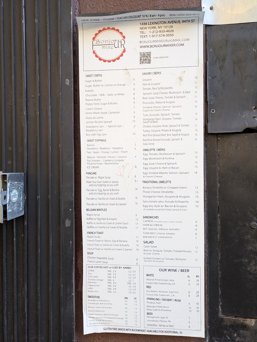 Welcome to Bonjour Mixeur, a charming creperie nestled at 1436 Lexington Ave, New York. This culinary gem offers a delightful array of both sweet and savory crepes, embodying a fusion of traditional and contemporary flavors. Customers rave about the quality of fresh ingredients and the warmth of the atmosphere.